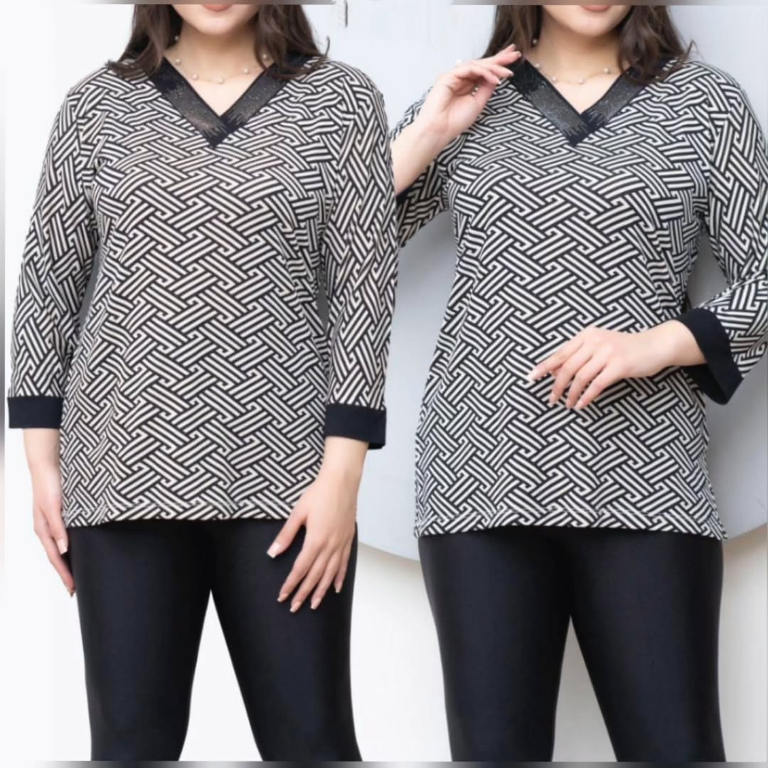 بلوز نخ ویسکوز اصل ترک یقه هفت پهن نگین دار