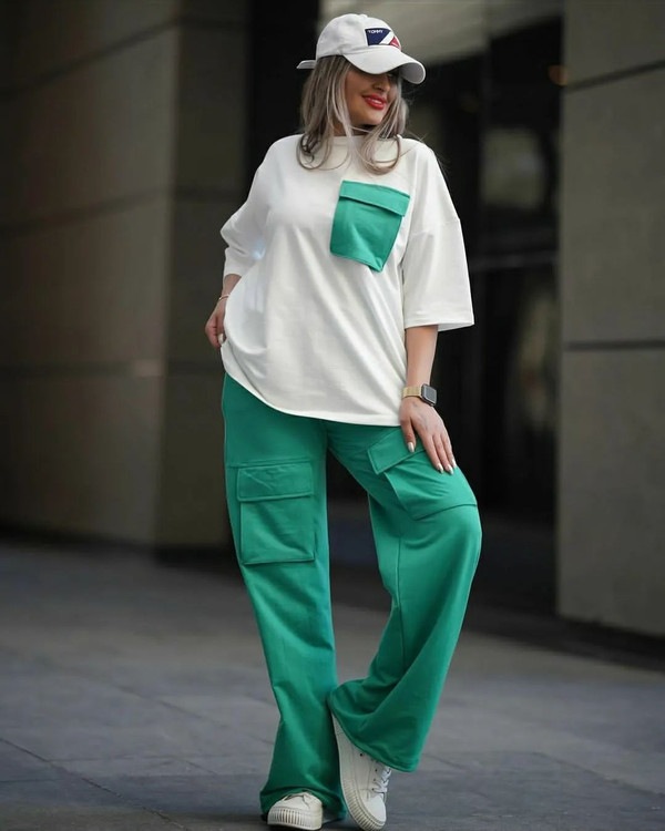 سایز: فری سایز مناسب سایز 38تا 44یا46✂️ تیشرت👈دورسینه 120_قدآستین از ابتدای سرشانه50_قد71 شلوار👈قد 107 cm